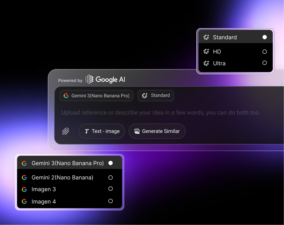 Turn your thoughts into ideas effortlessly with simple inputs. Powered with built-in Google AI models, that turns your natural expressions into meaningful creative ideas.